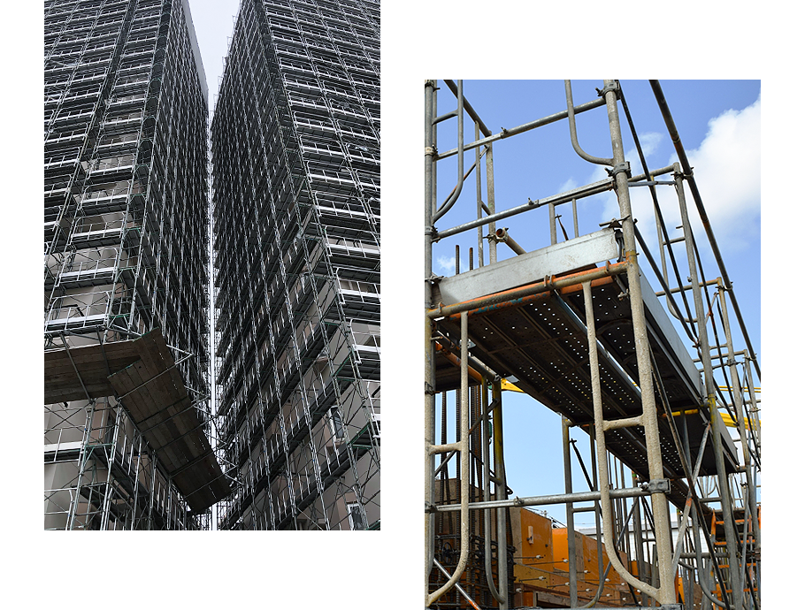 弊社は大阪府大阪市に事務所を構え、大阪府を中心に関西全域にて足場工事一式を請け負っております。戸建て・マンション・ビル・商業施設・店舗など建物全般の新築工事・改修工事にともなう足場工事を手がけています。